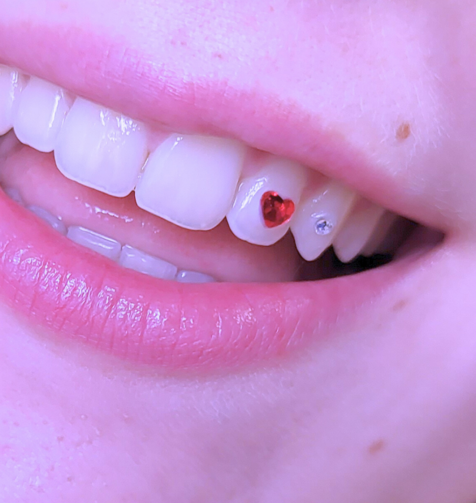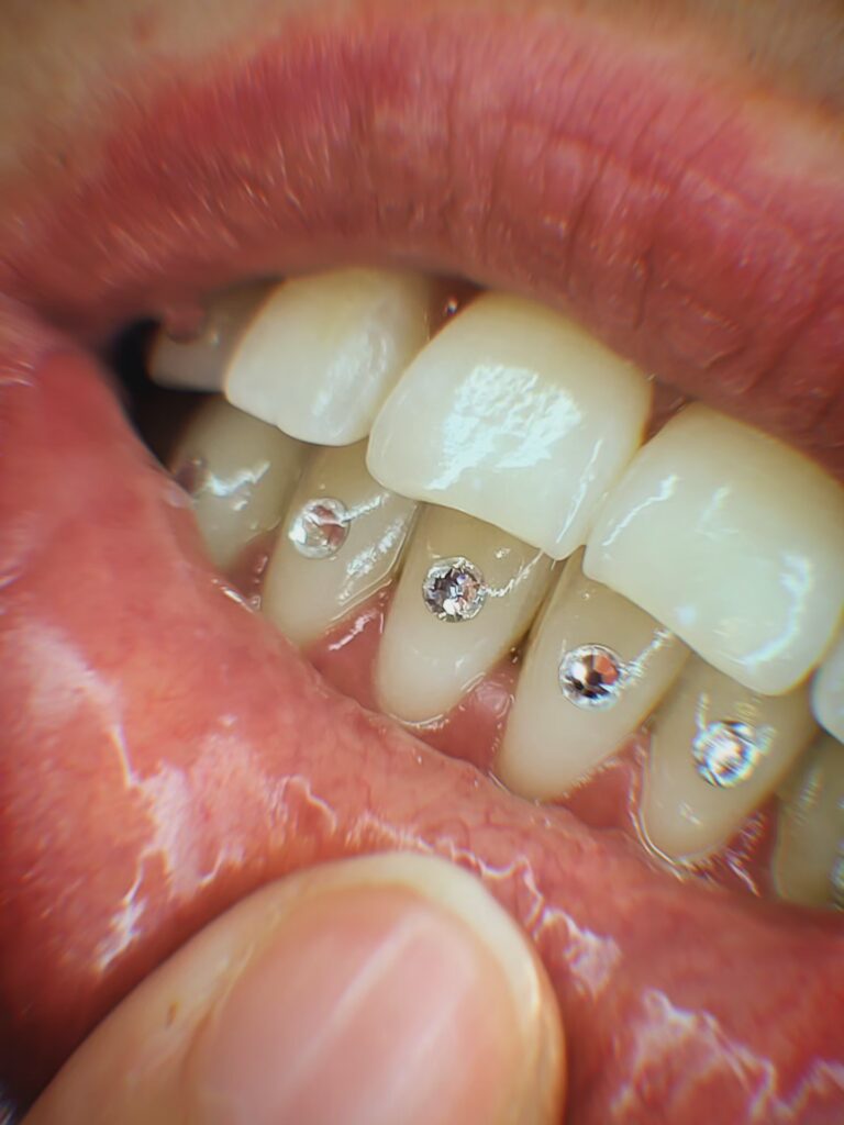 Les strass dentaires n’endommagent pas l’émail de tes dents. Les strass sont sans plomb et non toxiques. J’utilise uniquement des produits de qualité dentaire conçus pour la bouche.