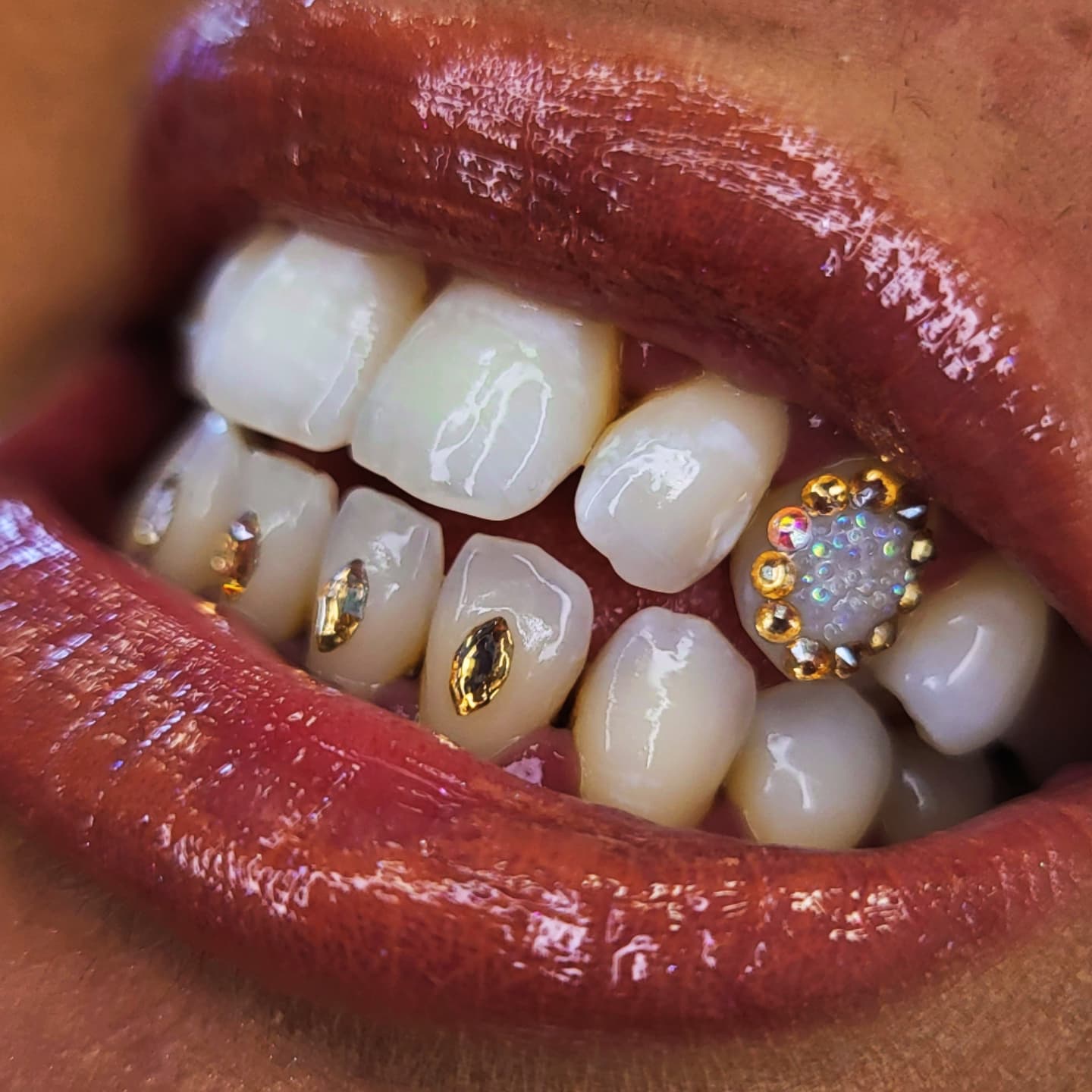 De perfectionnement pour compléter ta formation strass dentaire déjà acquise ou coaching de découverte pour apprendre le métier de Tooth gems artiste.